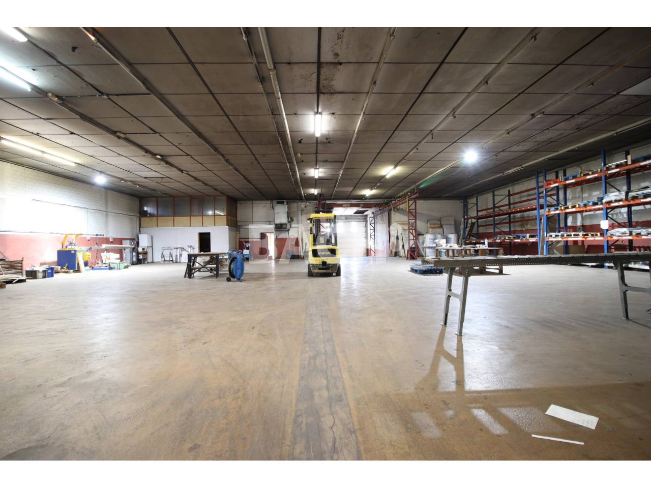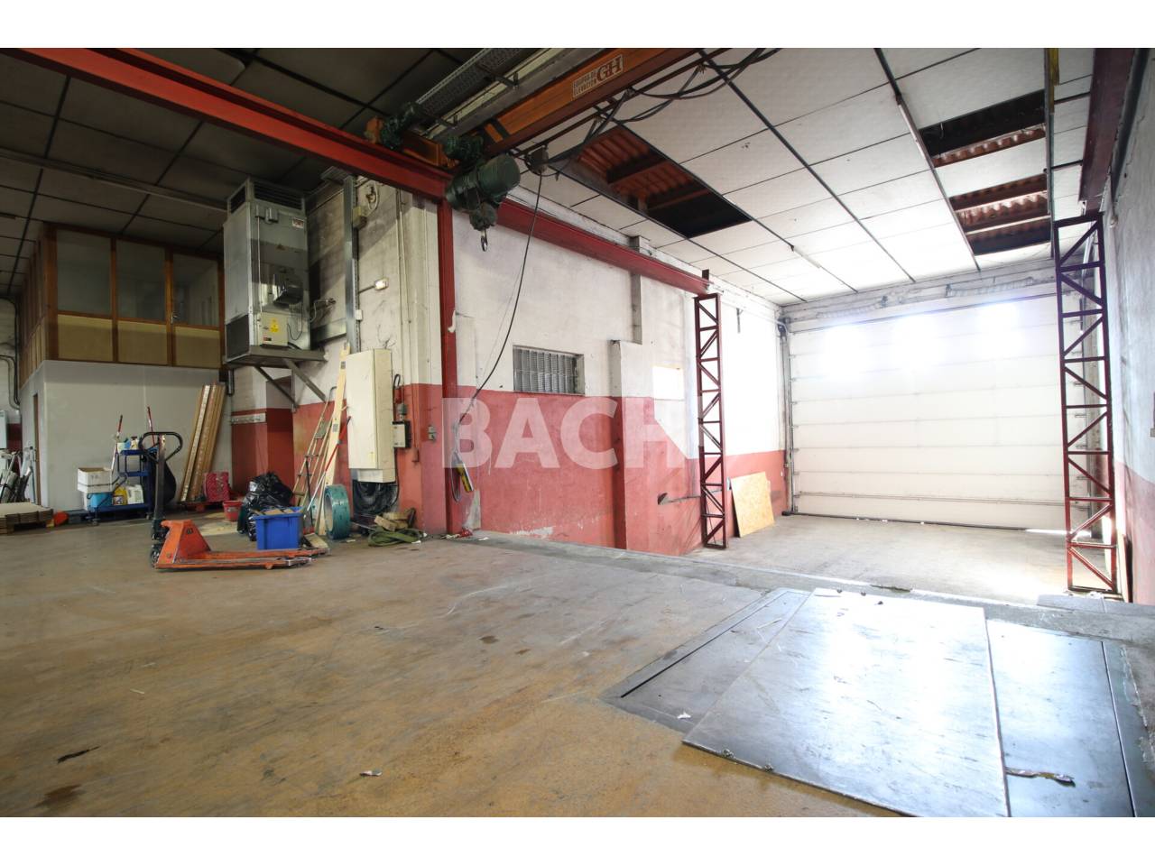 El edificio presenta una anchura de 25 metros y una profundidad de 75 metros, con un área principal diáfana dividida en dos módulos, que permite adaptar el espacio a diferentes procesos de producción o almacenamiento. Dispone de acceso para camiones a muelle de carga y puente grúa, facilitando las operaciones de manipulación y movimiento de mercancías o maquinaria pesada.