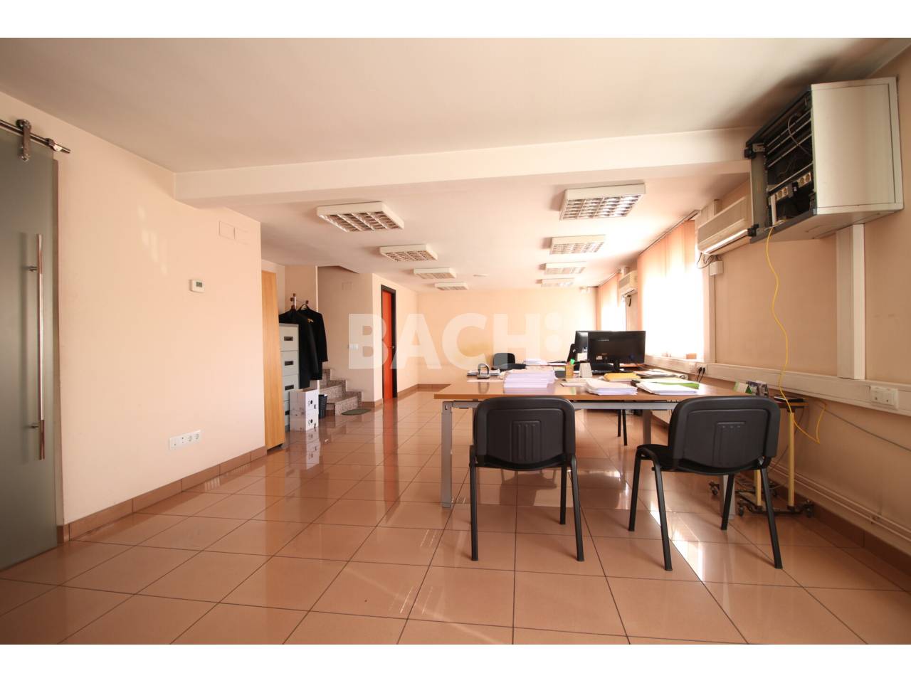 La nave incorpora una zona de oficinas de 300 m² distribuida en dos plantas, equipada con salas de reuniones, sala de juntas y espacios de archivo, que permiten centralizar la actividad administrativa dentro del mismo recinto.